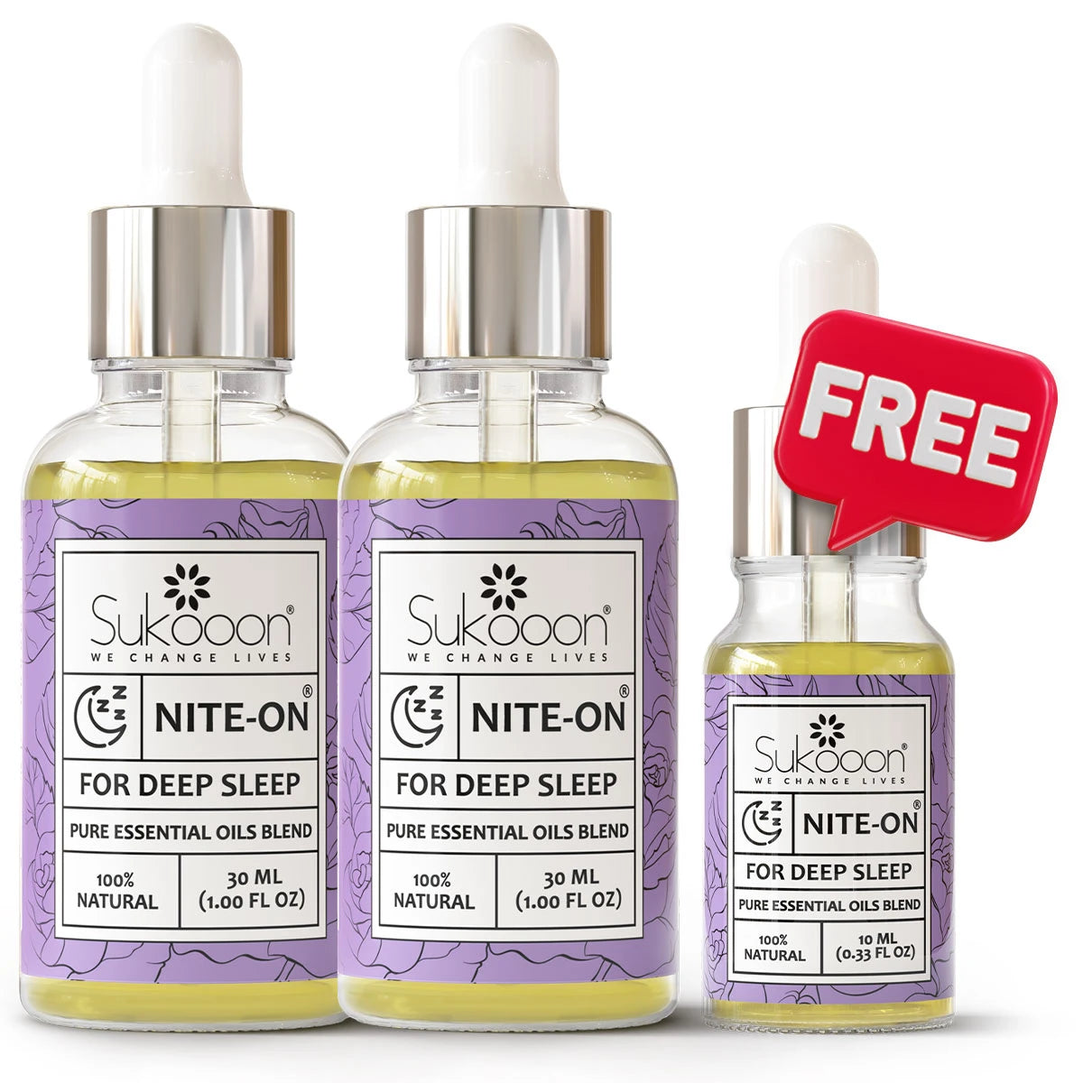 Apply 3-4 drops of Night-on essential oil blend at temples, back of neck and wrists and gently massage until fully absorbed. Apply one hour before the desired sleeping hour. Use twice or thrice a day as per need.