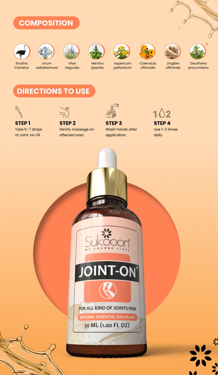 Apply 5-7 drops of the oil to the affected joint, knee, or back and massage gently until fully absorbed. For best results, cover the area with a hot towel or hot pack for instant relief. Use twice or thrice a day for optimal benefits.