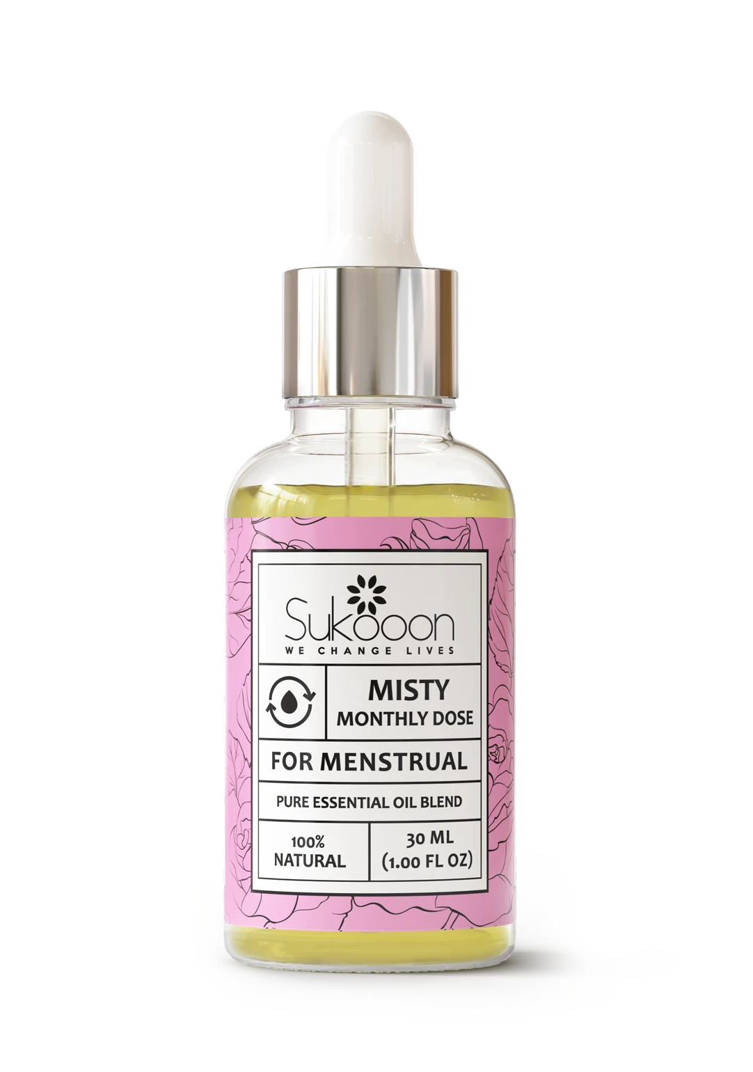 Apply 5-7 drops of Misty monthly essential oil blend by Sukooon on lower abdomen and massage gently until fully absorbed. Use twice or thrice a day. For best result, apply 5 days before menstruation till 5th day of period.